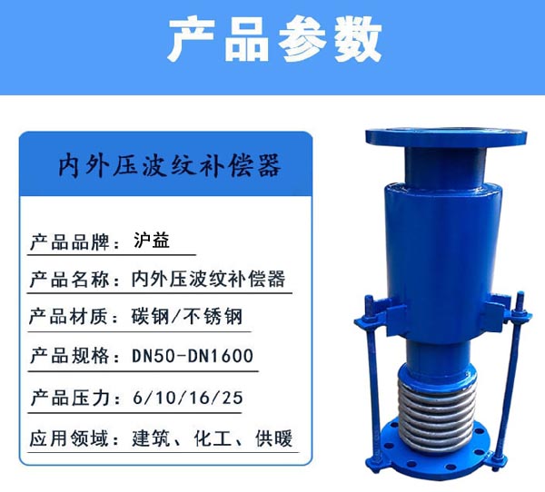 內(nèi)外壓平衡式波紋補償器也叫作內(nèi)外壓平衡式伸縮節(jié)、內(nèi)外壓平衡式膨脹節(jié),它是一種補償管道軸向位移的補償器,它不但能平衡自身的內(nèi)壓推力,還具有波紋剛度值小、產(chǎn)品運行時導(dǎo)向性好等特點,一般用于不宜設(shè)計固定支架的高空管線之上。